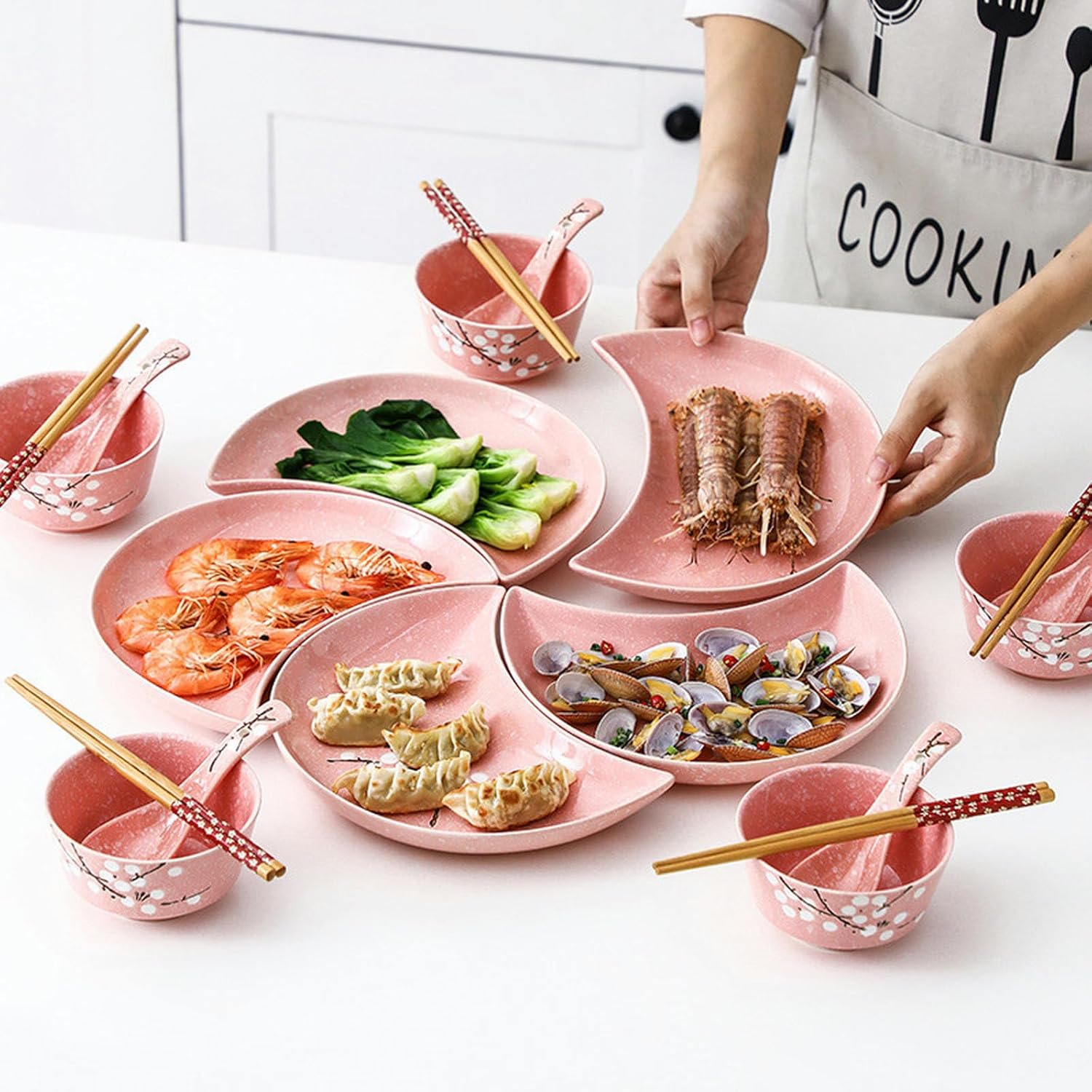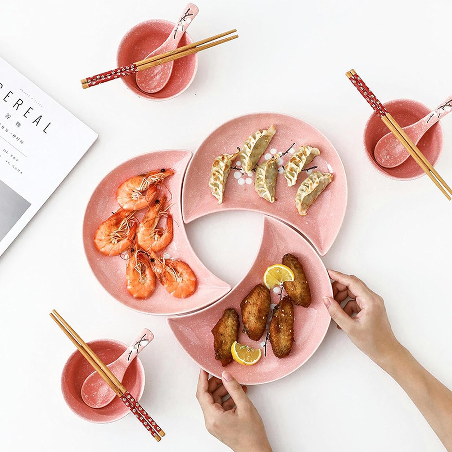 Japanese plum blossom hand-painted underglaze ceramic tableware, moon combination platter creative dim sum dish plate - moon plate 3-piece set - light green