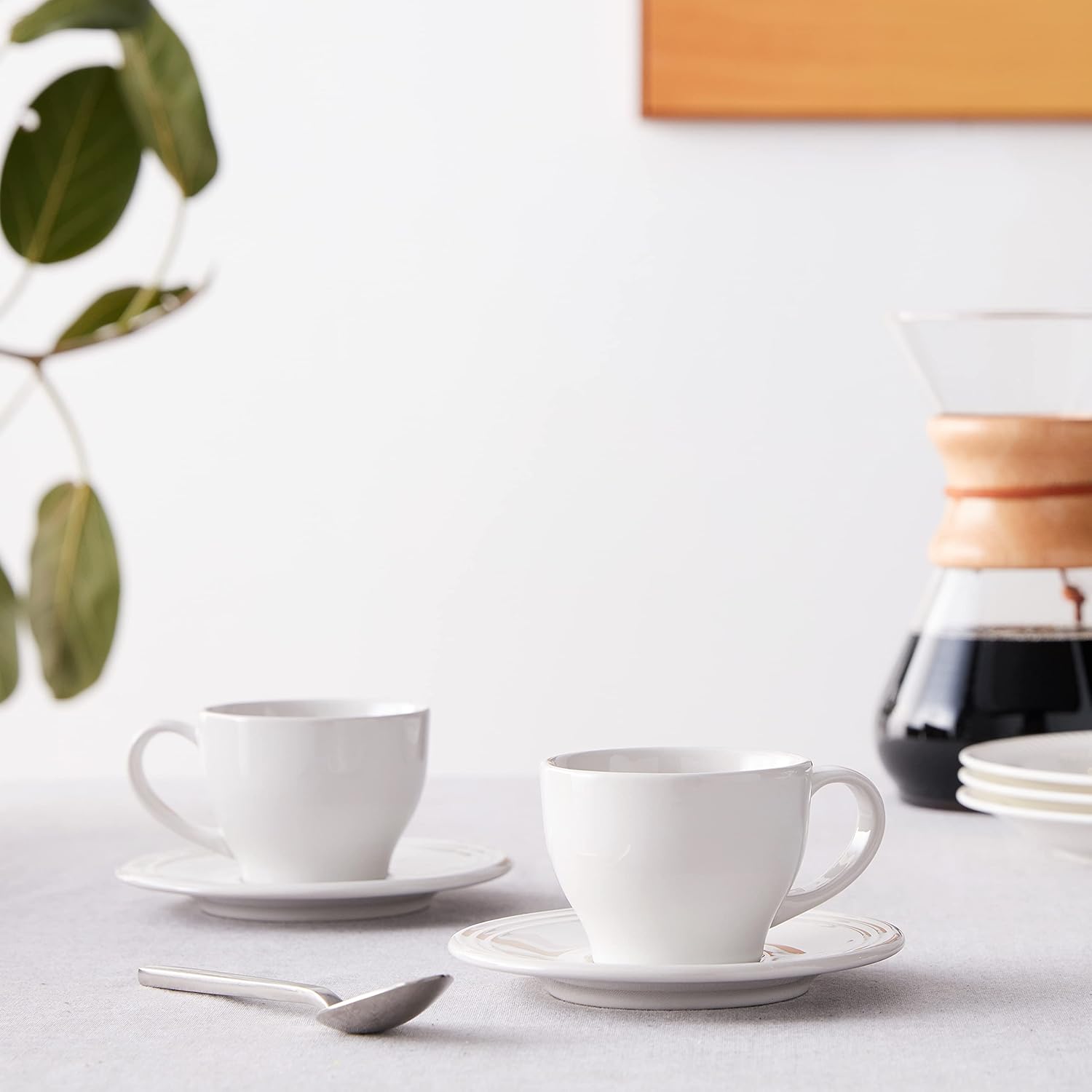 Le Creuset Stoneware Set of 2 Cappuccino Cups and Saucers , 7 oz. each, White