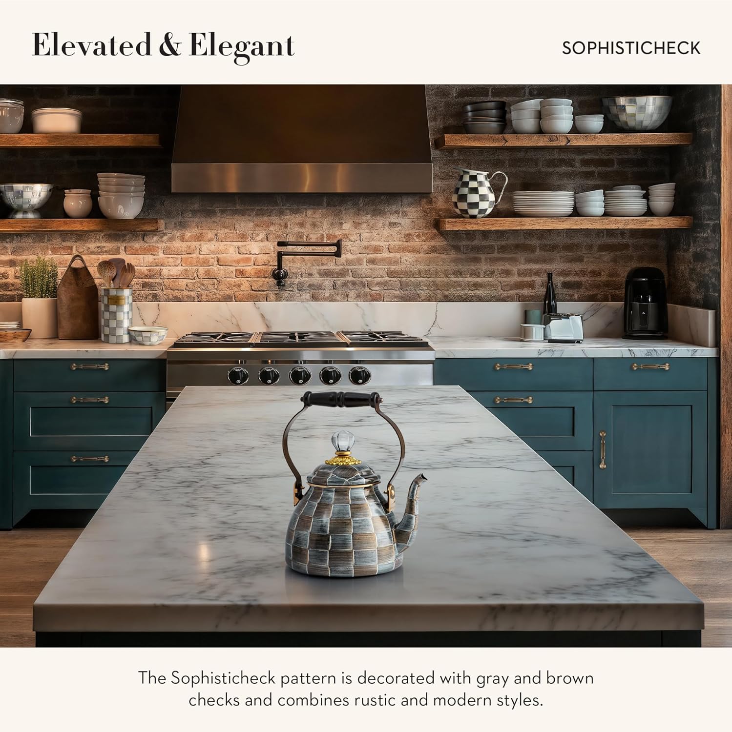 MACKENZIE-CHILDS 2-Quart Enamel Tea Kettle, Cute Tea Kettle for Stovetop, Sophisticheck