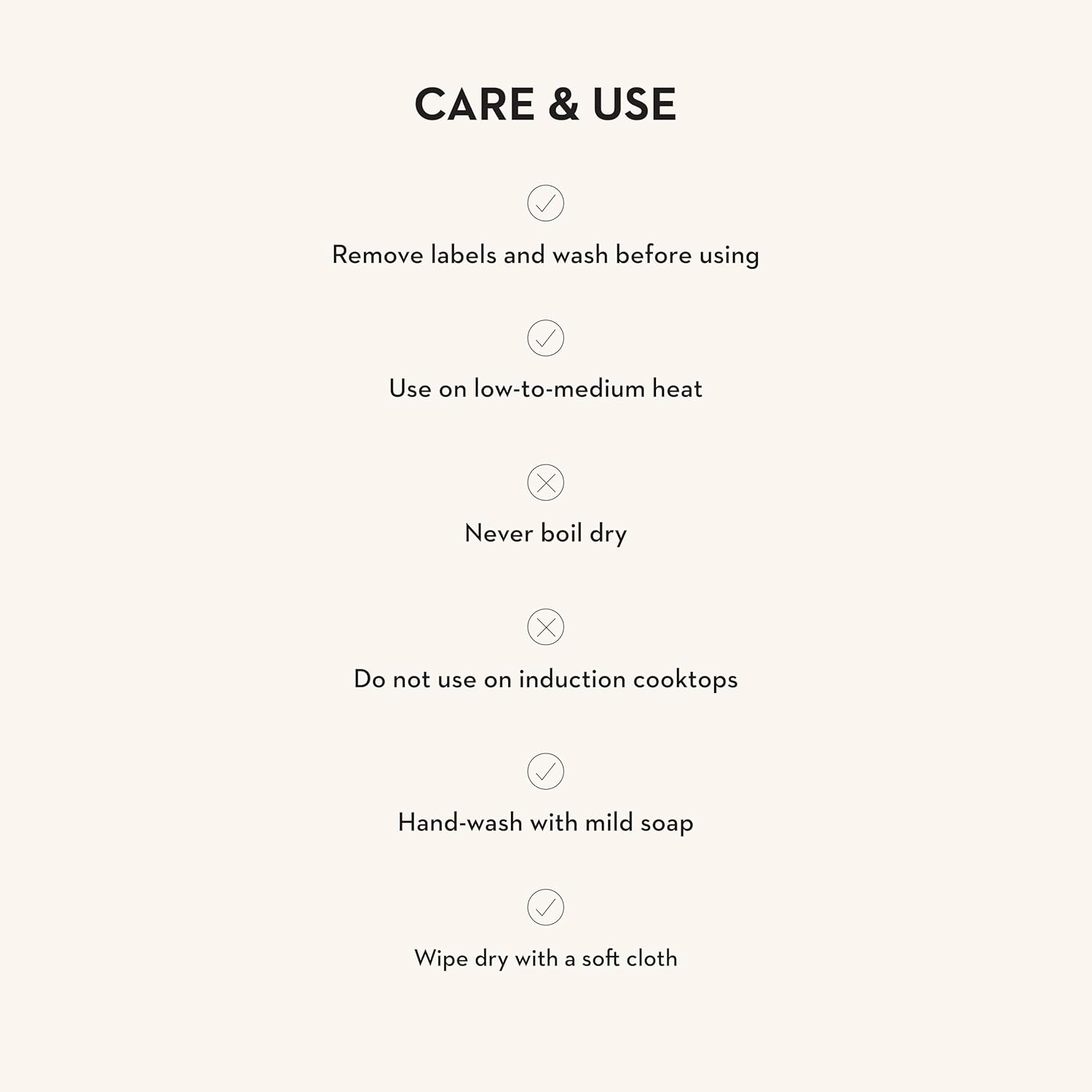 We recommend handwashing all kitchen items to preserve the finish. Dust the ceramic pieces with a soft dry cloth to keep them looking pristine.